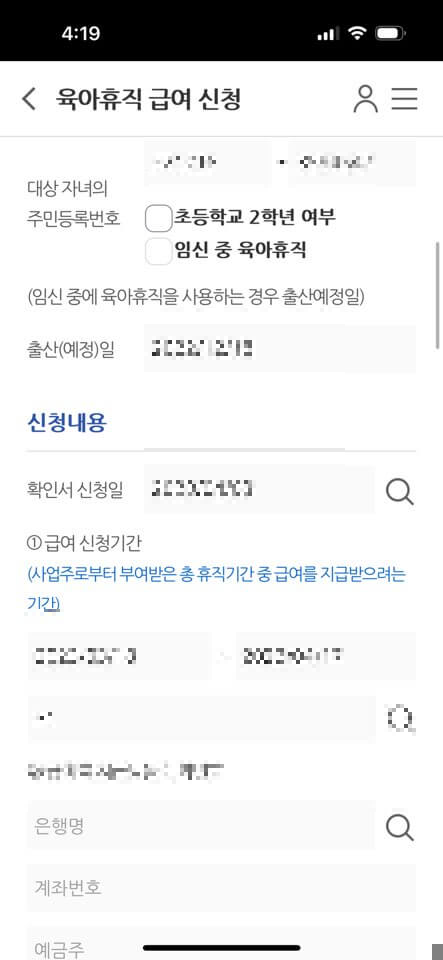 STEP3. 본인이 고용보험앱이나 홈페이지에서 직접 육아휴직 급여 신청서 제출