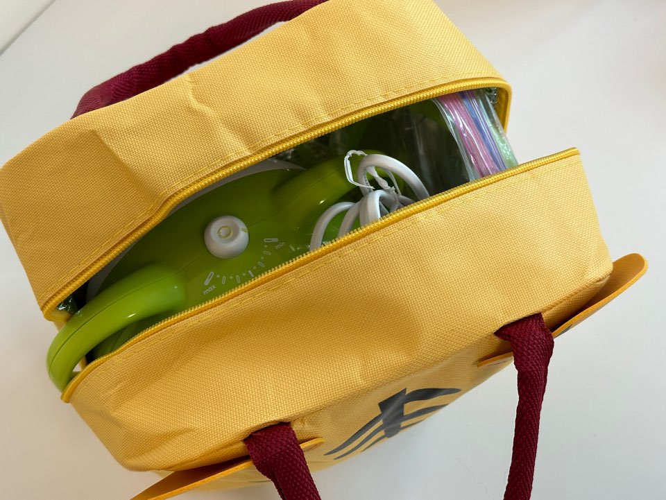노시부 홈페이지 보면 보관용 가방을 별도로 판매하는데 별로 예쁘지도 않은데 4만원이 넘는 가격에 판매 중이어서 사지 않았어요. 대신 요즘 엄마들 사이에서 노시부 가방으로 통하는 도시락 보냉백을 3천원 이하로 구매해서 노시부를 쾌적하게 보관하고 있습니다.