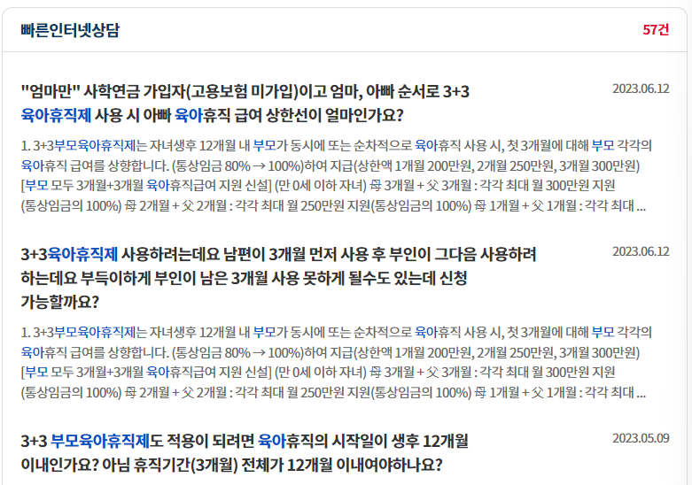 3+3 부모육아휴직제 인터넷상담