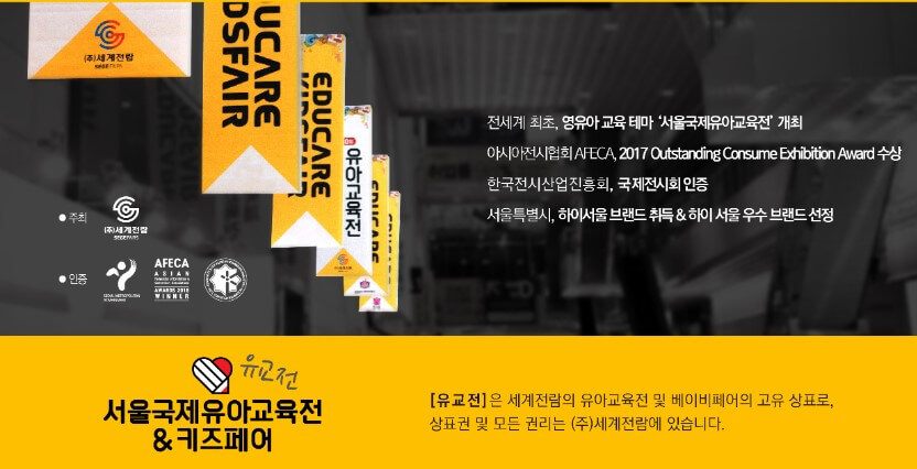 | 전시품목 | 교구, 문구, 완구, 리빙/DIY, 교육프로그램, 언어교육, 디지털 IT 가전, 이유식, 분유, 간식, 화장품, 동화책, 유아잡지, 수학/과학 교구재 기다 등등 |