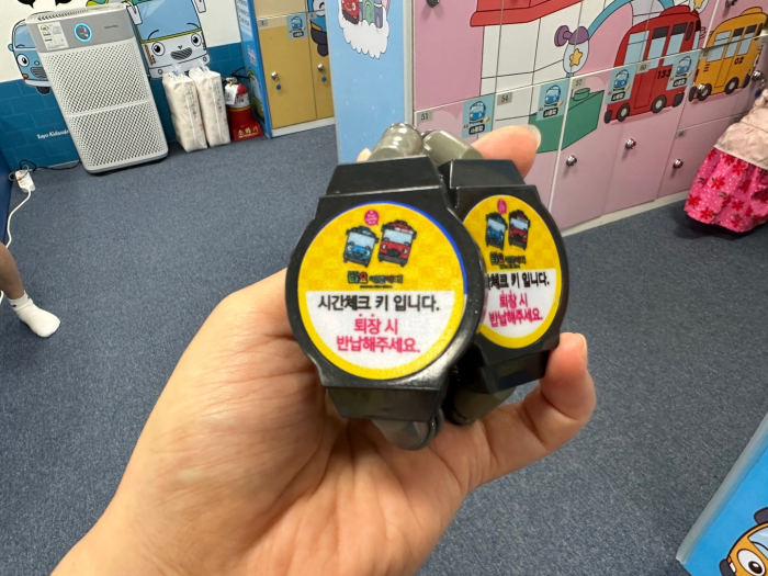 시간 체크키는 퇴장할 때 반납해 주시면 돼고, 중간에 출출한 경우 간식도 사먹을 수 있어요. 저희는 아기 케어하기 바빠서 먹지 못했지만 좀 더 큰 아이와 함께 오신다면 식사도 해결할 수 있어서 좋겠네요.