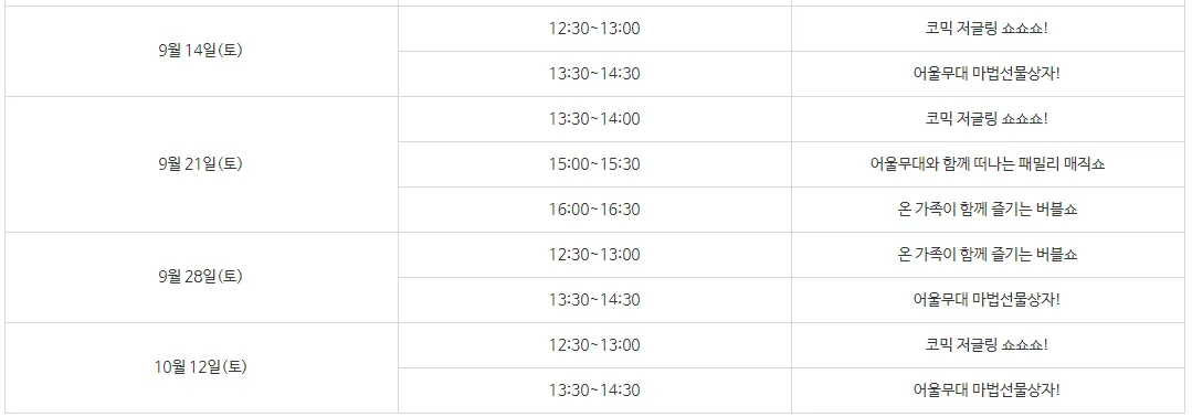 - 비고 : 공연은 매주 토요일만 진행되오니 참고해 주세요!