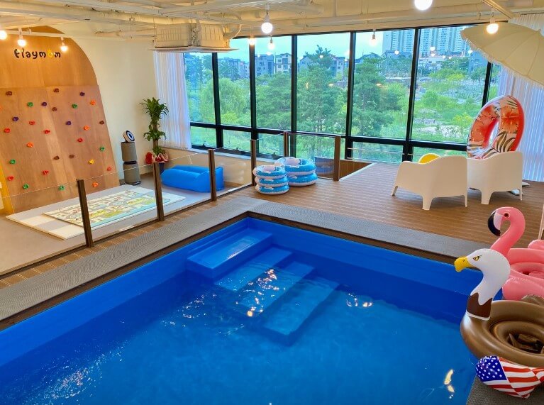 쉽게 설명하면 아이들과 엄마들이 놀 수 있는 공간대여 파티룸 종류 중 하나인데요. 수영장까지 포함된 공간대여를 워터룸이라고 부릅니다. 워터룸 혹은 키즈풀이라고 검색하면 많이 정보가 나옵니다. 100일이상 된 영유아부터 초등학교 저학년까지 프라이빗한 공간에서 수영할 수 있고 엄마들은 휴식을 취하고 음식도 시켜먹을 수 있어서 만족도가 높습니다.
