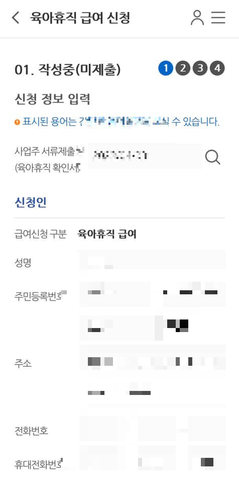 - 모성보호 > 육아휴직 급여신청 신청서 클릭