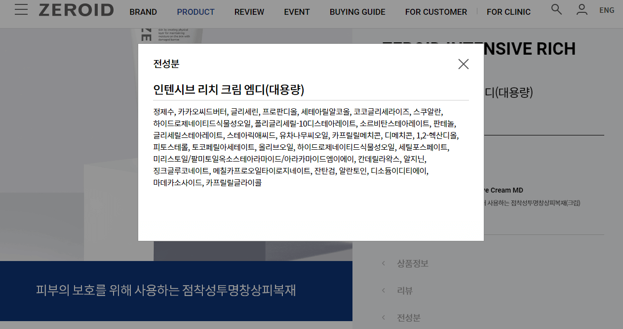 제가 병원에서 사온 제로이드크림은 의료기기에 속하고, 제품 안내 페이지에서 확인했을 때 인공향료, 인공색소, 에탄올, 파라벤, 미네랄오일, 페녹시에탄올, PG, GHT, 벤질알코올, 트리에탄올아민 이렇게 10가지 무첨가라고 소개되어 있었어요. 사실 이렇게 보면 저게 다 뭔지 모르잖아요? 그래서 저것중에서 낯선 것들 중심으로 한 번 찾아봤습니다. 결론적으론 아래 화학성분이 제외하고도 건조한 피부에 흡수하고 수분 유지가 잘되어 건조한 피부개선에 도움이된다는 거였어요.
