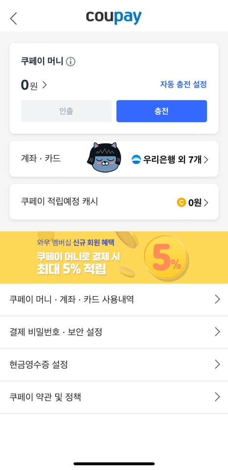 - 마이페이지 > 결제수단 ·쿠페이 > 결제수단 등록 > 신용/체크카드 선택 > 국민행복카드 추가