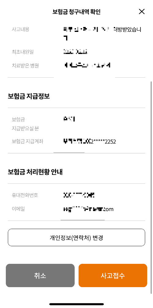 4. 보험금 지급계좌 입력사항 확인, 계약 담당자에게 문자 발송을 할 것인지는 선택할 수 있습니다. 저는 번거로운 거 안 좋아해서 발송안함 선호해요.