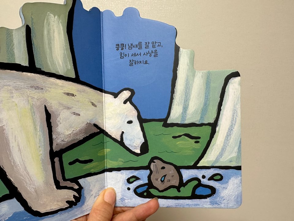 예) 북극곰 페이지면 책에 있는 텍스트 읽어주기가 끝이 아니라 추가로 "여기 엄청 크고 하얀 곰이 있네", 곰은 어디서 사는지 아니?